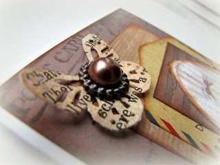 В работе использовала много штампов. Коричневая подложка вся заштампована, как и лист в конверте (штамп-ноты). Маленький крафт-конвертик (как и все бумаженции) затонирован по краям. Бабочка тут у меня почти самодельная)))) Из старой рабочей страницы сына по английскому языку была вырвана страница и покрашена чаем.... и надыроколена бабочка.... Делала её по МК, только ссылку не могу пока найти((((